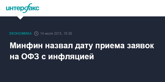 Москва. 14 июля. INTERFAX.RU – Минфин объявил о приеме заявок с 15 июля до 12:00 мск 16 июля на покупку нового инструмента - облигаций федерального займа с индексируемым номиналом (ОФЗ-ИН).
