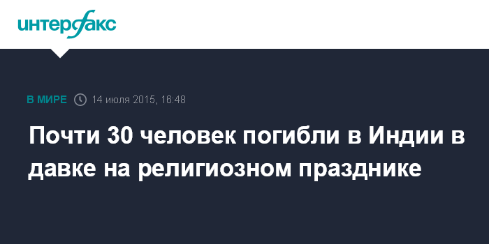 Москва. 14 июля. INTERFAX.RU - В индийском штате Андхра-Прадеш погибли не менее 27 паломников, прибывших к реке Годавари для ритуального омовения, сообщает во вторник британская Би-би-си.