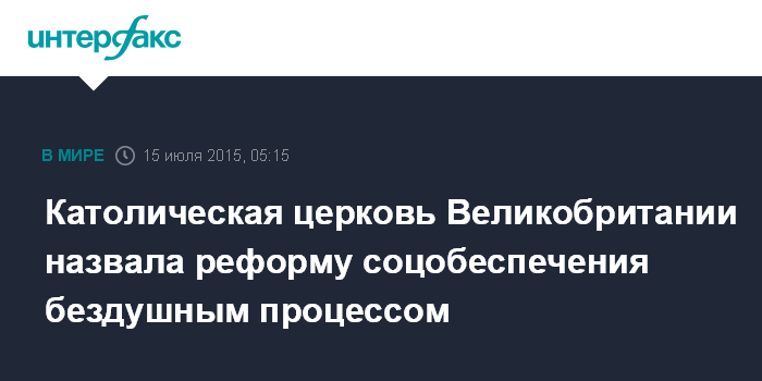 Москва. 15 июля. INTERFAX.RU - Пять лет реформ превратили систему социального обеспечения в Великобритании в бездушный, карательный и бюрократический процесс, которому не хватает человеческого участия и сострадания. Об этом заявил представитель Католической церкви, передает Guardian.