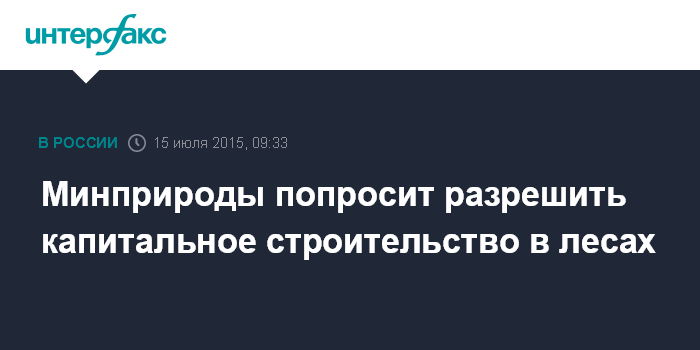 Москва. 15 июля. INTERFAX.RU - Минприроды подготовило поправки в Лесной кодекс, которые позволят возводить объекты для туризма в лесах и огораживать их, сообщает в среду "Коммерсант".