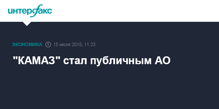 Москва. 15 июля. INTERFAX.RU – "КАМАЗ" преобразован в ПАО в соответствии с решением годового собрания акционеров компании, говорится в пресс-релизе предприятия.