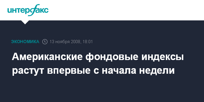 Нью-Йорк. 13 ноября. INTERFAX.RU - Американские фондовые индексы растут в четверг впервые с начала этой недели на фоне обращения избранного президента США Барака Обамы к Конгрессу с просьбой о спасении автомобильной отрасли страны, сообщает агентство Bloomberg.