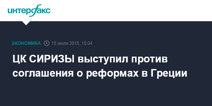 Москва. 15 июля. INTERFAX.RU – Члены Центрального комитета греческой правящей партии СИРИЗА на голосовании в среду отвергли план радикальных реформ, предлагаемый правительством.