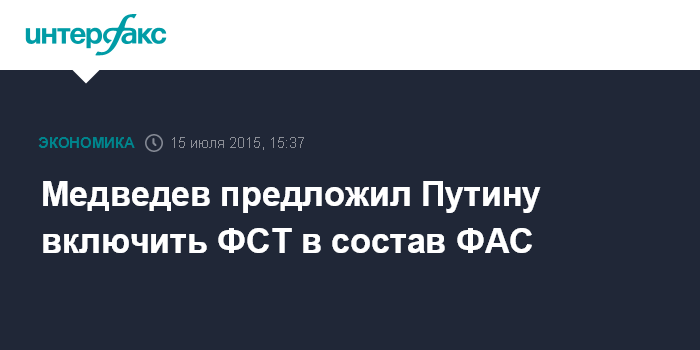 Медведев предложил Путину включить ФСТ в состав ФАС