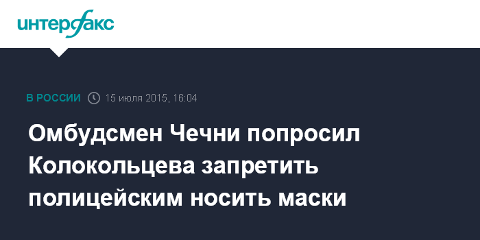 На территории Чечни ношение масок на улицах запрещено. "Власти республики объясняют такой запрет тем, что большинство преступлений совершается людьми, которые скрывают свои лица в масках, и население не может при этом разобраться, с кем имеет дело", - отметил омбудсмен.