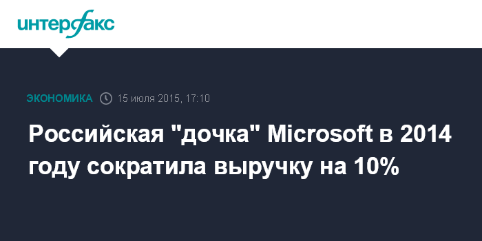 Москва. 15 июля. INTERFAX.RU - ООО "Майкрософт Рус", основное российское подразделение американского софтверного гиганта Microsoft, в 2014 году сократило выручку по РСБУ на 10,4%, до 8,9 млрд рублей, свидетельствуют данные базы "СПАРК-Интерфакс".