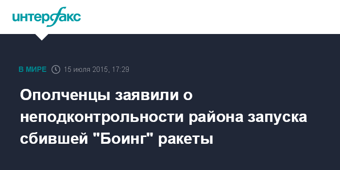 Ополченцы заявили о неподконтрольности района запуска сбившей "Боинг" ракеты