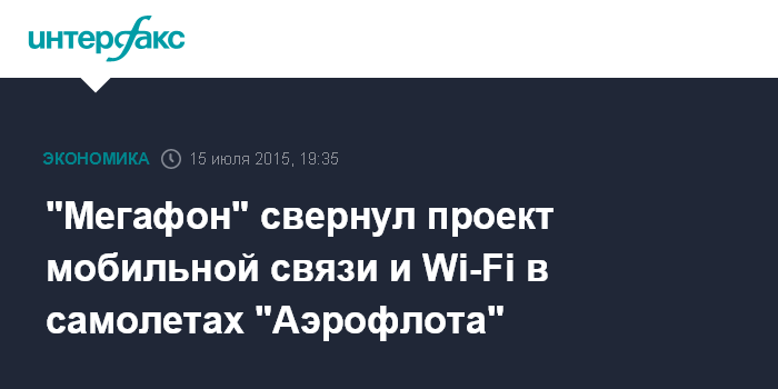 Москва. 15 июля. INTERFAX.RU - ПАО "Мегафон" и ПАО "Аэрофлот - российские авиалинии" не стали продлевать проект по оказанию услуг сотовой связи на лайнерах авиакомпании, сообщил "Интерфаксу" источник на телекоммуникационном рынке и подтвердила представитель оператора Алия Бекетова.