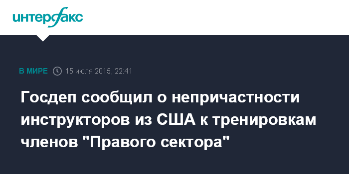 Москва. 15 июля. INTERFAX.RU - Американские инструкторы не занимаются обучением членов украинской экстремистской организации "Правый сектор", заявил представитель госдепа США Джон Кирби.