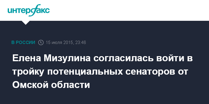 "Временно исполняющий обязанности губернатора Омской области Виктор Назаров действительно предложил мне войти в число трех кандидатов в сенаторы от Омской области, с которыми он пойдет на выборы. Я приняла предложение главы региона, поскольку считаю его эффективным управленцем. Я поддерживаю действующего главу, прежде всего, потому что он - профессионал", - сказала Мизулина "Интерфаксу" в ночь на четверг.