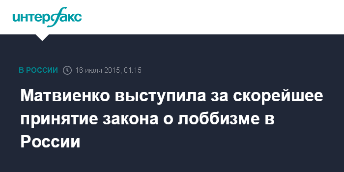 Москва. 16 июля. INTERFAX.RU - Лобби является серьезной проблемой для работы законодателей, считает председатель Совета Федерации Валентина Матвиенко.