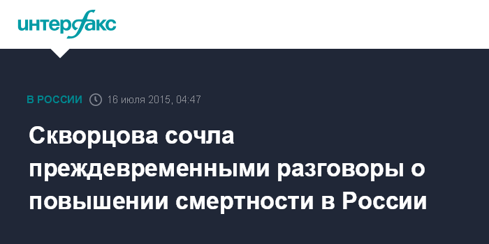 "Прежде всего, я хочу сказать, что преждевременно говорить о повышении смертности. У нас увеличивается продолжительность жизни людей. Когда страна проходит такой этап, в первое время цифры по смертности растут, потому что увеличивается число пожилых людей. Но в дальнейшем смертность начинает снижаться, несмотря на то, что продолжительность жизни остается высокой. Нужно, чтобы шаг снижения смертности увеличился настолько, чтобы компенсировать "постарение"", - сообщила Скворцова.