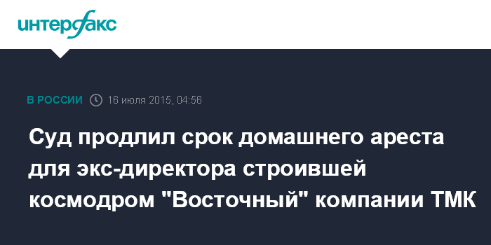 Суд продлил срок домашнего ареста для экс-директора строившей космодром "Восточный" компании ТМК