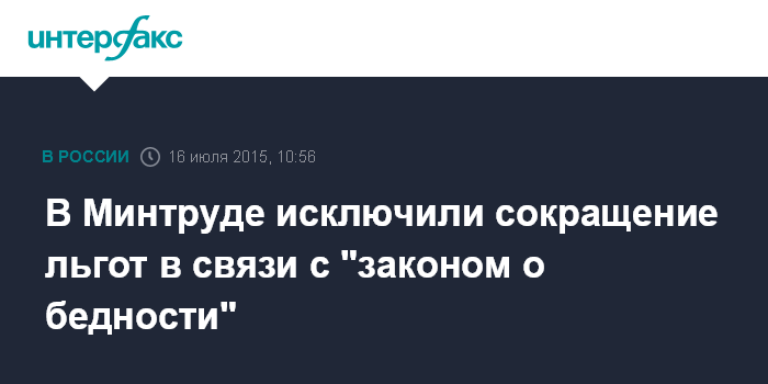 В Минтруде исключили сокращение льгот в связи с "законом о бедности"