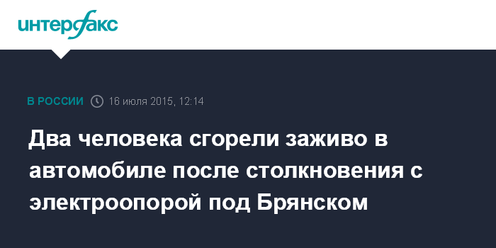 Два человека сгорели заживо в автомобиле после столкновения с электроопорой под Брянском
