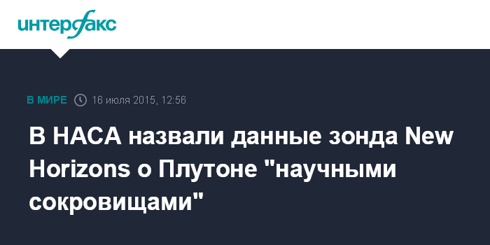 Москва. 16 июля. INTERFAX.RU - Специалисты НАСА анализируют первые данные о Плутоне, переданные космическим зондом "Новые горизонты" (New Horizons) и крайне довольны объемом поступающей информации, сообщают в четверг американские СМИ.
