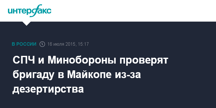 Москва. 16 июля. INTERFAX.RU - Президентский Совет по правам человека (СПЧ) и министерство обороны проведут совместную проверку ситуации в 33-й Майкопской бригаде, некоторых военнослужащих которой привлекли к ответственности за дезертирство.