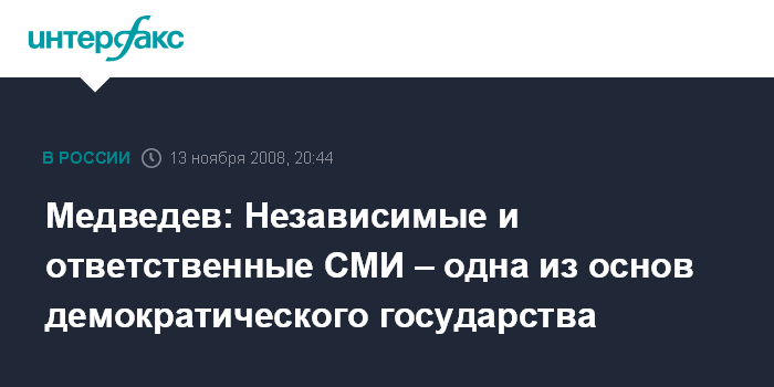Медведев: Независимые и ответственные СМИ – одна из основ демократического государства