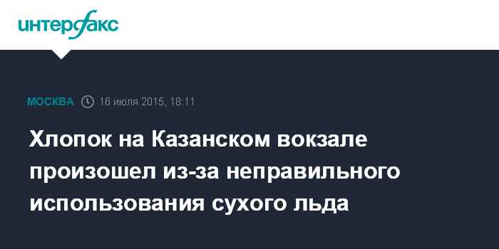 Хлопок на Казанском вокзале произошел из-за неправильного использования сухого льда