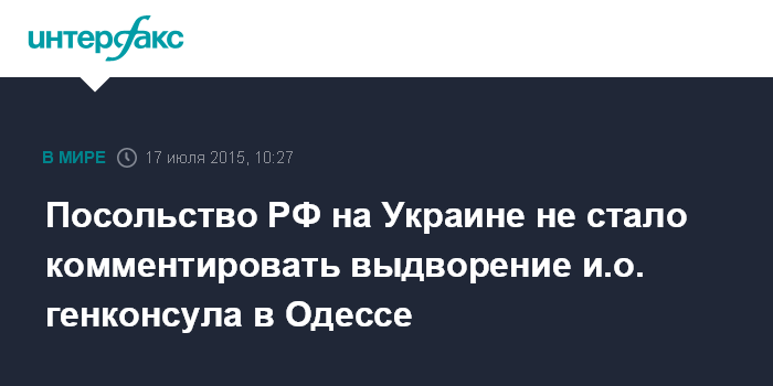 Москва. 17 июля. INTERFAX.RU - В посольстве России в Киеве не комментируют ситуацию с объявлением и.о генконсула РФ в Одессе персоной нон-грата.