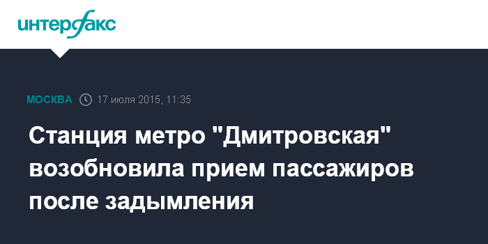 Москва. 17 июля. INTERFAX.RU - Станция московского метро "Дмитровская", закрывавшаяся из-за небольшого пожара в подсобном помещении, открылась для пассажиров, сообщил "Интерфаксу" источник в правоохранительных органах.