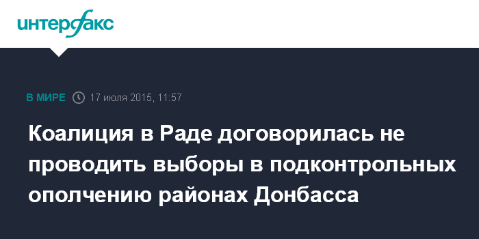 Коалиция в Раде договорилась не проводить выборы в подконтрольных ополчению районах Донбасса