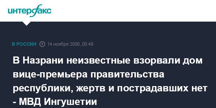 Как сообщил агентству "Интерфакс-Юг" представитель МВД Ингушетии, дом, расположенный на улице Курганной, не был достроен "и в домовладении никто не проживает" .