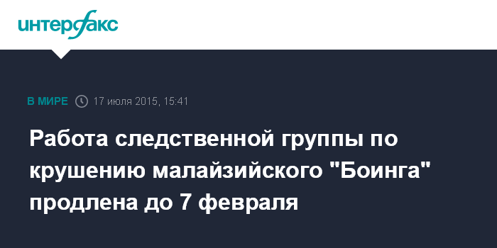 Работа следственной группы по крушению малайзийского "Боинга" продлена до 7 февраля