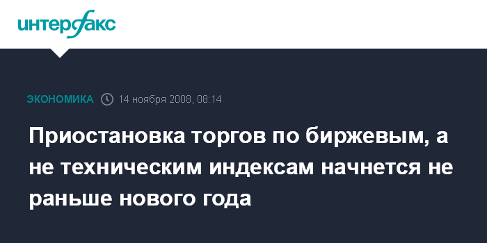 Приостановка торгов по биржевым, а не техническим индексам начнется не раньше нового года