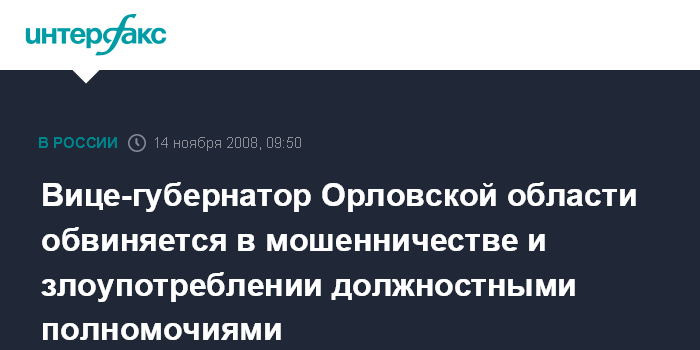 Вице-губернатор Орловской области обвиняется в мошенничестве и злоупотреблении должностными полномочиями