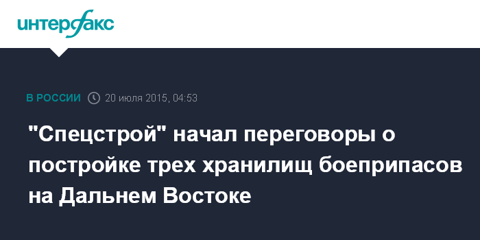 "Спецстрой" начал переговоры о постройке трех хранилищ боеприпасов на Дальнем Востоке