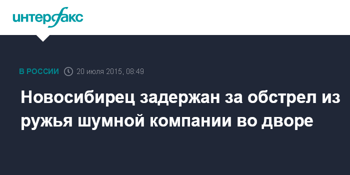 Москва. 20 июля. INTERFAX.RU - Уголовное дело возбуждено в отношении жителя Новосибирска, обстрелявшего шумную компанию во дворе жилого дома, сообщает пресс-служба ГУ МВД России.