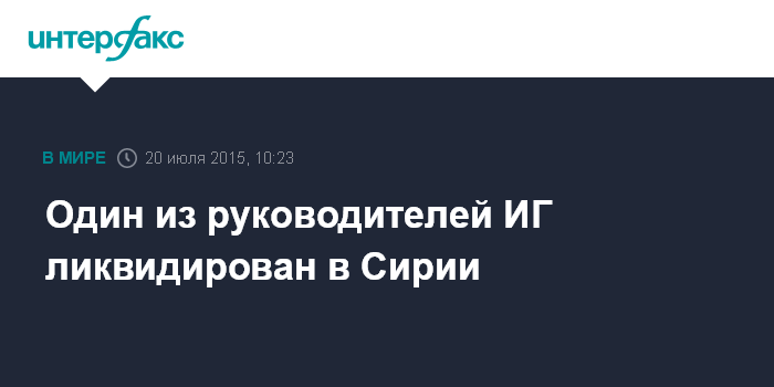 Москва. 20 июля. INTERFAX.RU - Один полевой командир и еще пятеро боевиков группировки "Исламское государство" (ИГ) уничтожены авиаударом близ сирийского города Хасака, сообщили в понедельник в Наблюдательном совете по правам человека в Сирии.