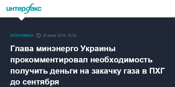 "Получить деньги в октябре не настолько эффективно, потому что мощности по закачке все-таки ограничены. Поэтому нам достаточно важно получить деньги не позднее августа", - сказал он в эфире "5-го канала".