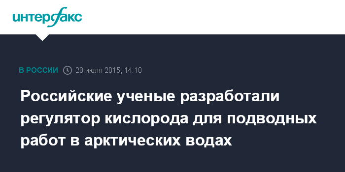 Российские ученые разработали регулятор кислорода для подводных работ в арктических водах
