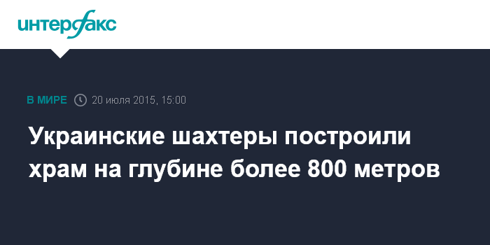 Москва. 20 июля. INTERFAX.RU - Часовню в честь великомученицы Варвары открыли на глубине 840 метров в шахте "Эксплуатационная" Запорожской области Украины.