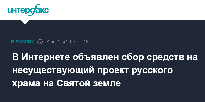 В Интернете объявлен сбор средств на несуществующий проект русского храма на Святой земле