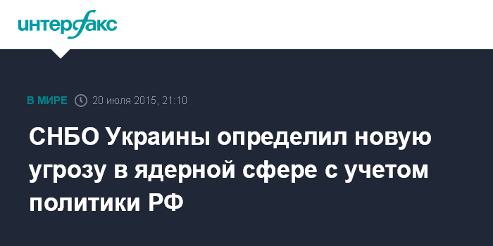 Москва. 20 июля. INTERFAX.RU - Совет национальной безопасности и обороны Украины (СНБО) на заседании в понедельник рассмотрел вопросы, касающиеся ядерной безопасности.