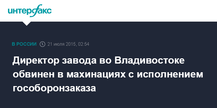 Директор завода во Владивостоке обвинен в махинациях с исполнением гособоронзаказа