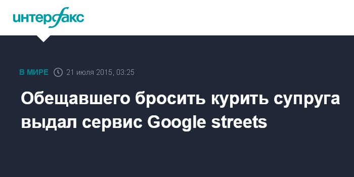 Москва. 21 июля. INTERFAX.RU - Мужчина, обещавший своей супруге бросить курить, был разоблачен сервисом фотографий Google Street View, которым воспользовалась его жена, сообщает The Telegraph.