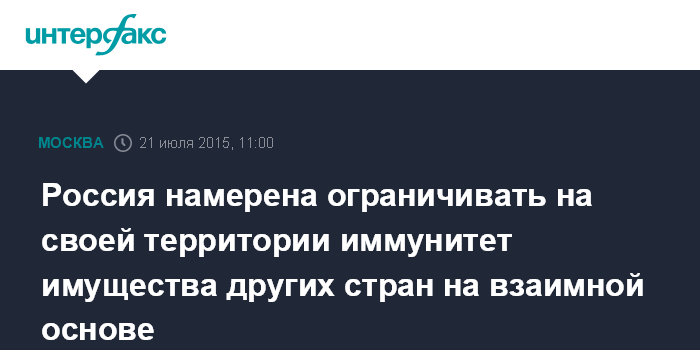 Москва. 21 июля. INTERFAX.RU - Комиссия правительства по законопроектной деятельности одобрила проект закона, позволяющего российским судам на основе принципа взаимности ограничивать на территории РФ юрисдикционный иммунитет других государств и их имущества.
