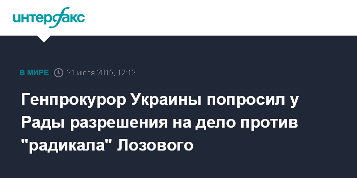 Москва. 21 июля. INTERFAX.RU - Руководитель парламентской фракции Радикальной партии Олег Ляшко утверждает, что генпрокурор Украины Виктор Шокин подал в Верховную раду представление о привлечении к уголовной ответственности его заместителя, депутата Андрея Лозового.