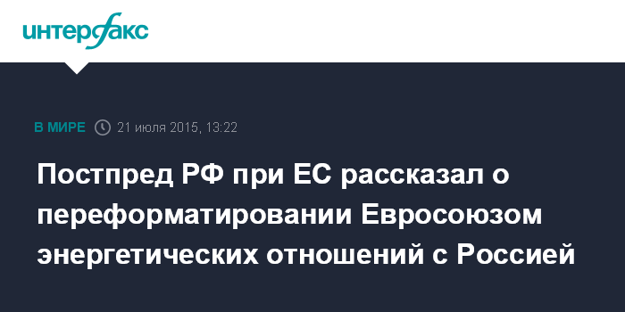 Москва. 21 июля. INTERFAX.RU - Постоянный представитель России при Евросоюзе Владимир Чижов не очень удивлен формулировкой постановления Совета ЕС по иностранным делам по "энергетической дипломатии", в котором говорится, что при наличии надлежащих условий ЕС приступит к переформатированию отношений с РФ в области энергетики.