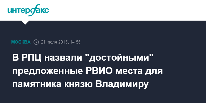 Москва. 21 июля. INTERFAX.RU - В Русской церкви высказали свои пожелания по поводу возможного места для памятника святому князю Владимиру.