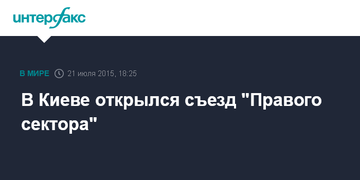 Москва. 21 июля. INTERFAX.RU - Съезд украинской ультрарадикальной партии "Правый сектор" (запрещена в РФ - ИФ) открылся во вторник в Киеве.