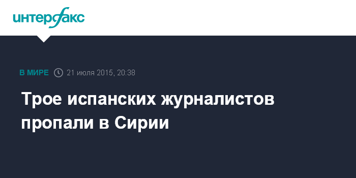 Москва. 21 июля. INTERFAX.RU - Трое подданных Испании, работавших в сирийском городе Алеппо на условиях фриланса, пропали, сообщает во вторник агентство Associated Press.
