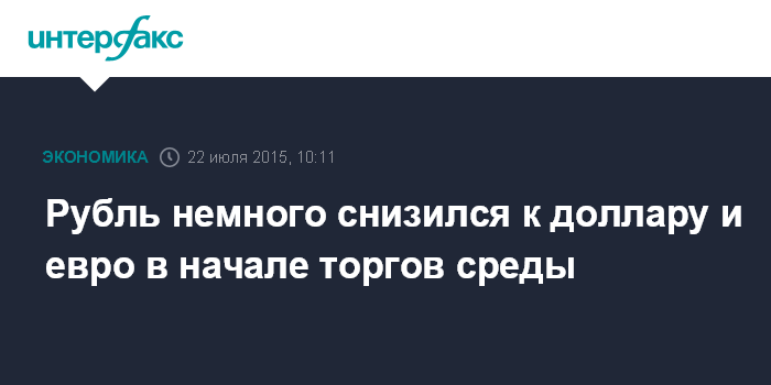 Москва. 22 июля. INTERFAX.RU – Доллар и евро немного выросли при открытии торгов на Московской бирже в среду, рубль немного снизился на фоне снижения мировых цен нефти.
