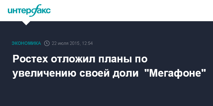 Москва. 22 июля. INTERFAX.RU – Госкорпорация "Ростех", контролирующая около 1,4% капитала "Мегафона", пока не планирует увеличивать свою долю в операторе, заявил журналистам начальник департамента информации и коммуникаций ГК Василий Бровко.