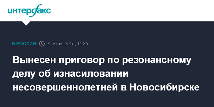 Москва. 22 июля. INTERFAX.RU - Ленинский районный суд Новосибирска вынес обвинительный приговор четырем местным жителям, в том числе трем несовершеннолетним, обвиненным в изнасиловании 16-летней уроженки Кемерово, сообщает СУ СКР по региону.