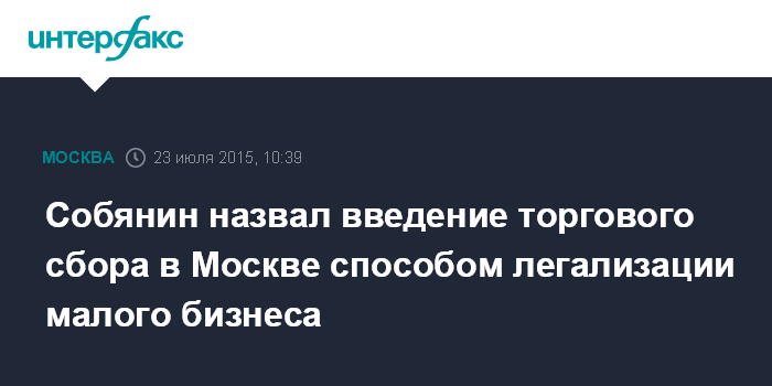 Москва. 23 июля. INTERFAX.RU - Мэр Москвы Сергей Собянин считает, что введение в столице торгового сбора не окажет негативного влияния на деятельность малого и среднего бизнеса.